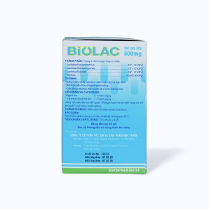 Viên nang Biolac là một loại thực phẩm chức năng thường được sử dụng để hỗ trợ sức khỏe tiêu hóa. Sản phẩm này thường chứa các lợi khuẩn (probiotics) có lợi cho hệ tiêu hóa.