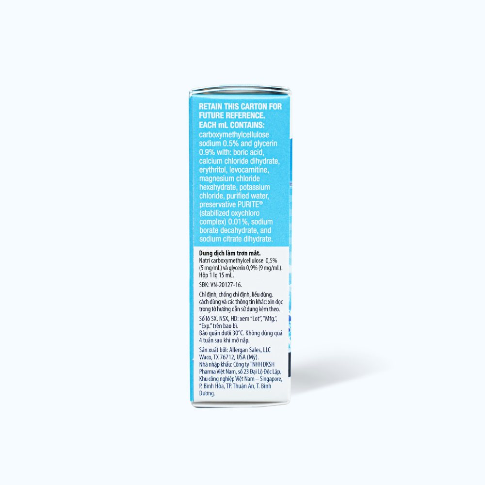 - Hoạt chất: Natri carboxymethylcellulose 0.5% (5mg/ml) và glycerin 0.9% (9mg/ml.).