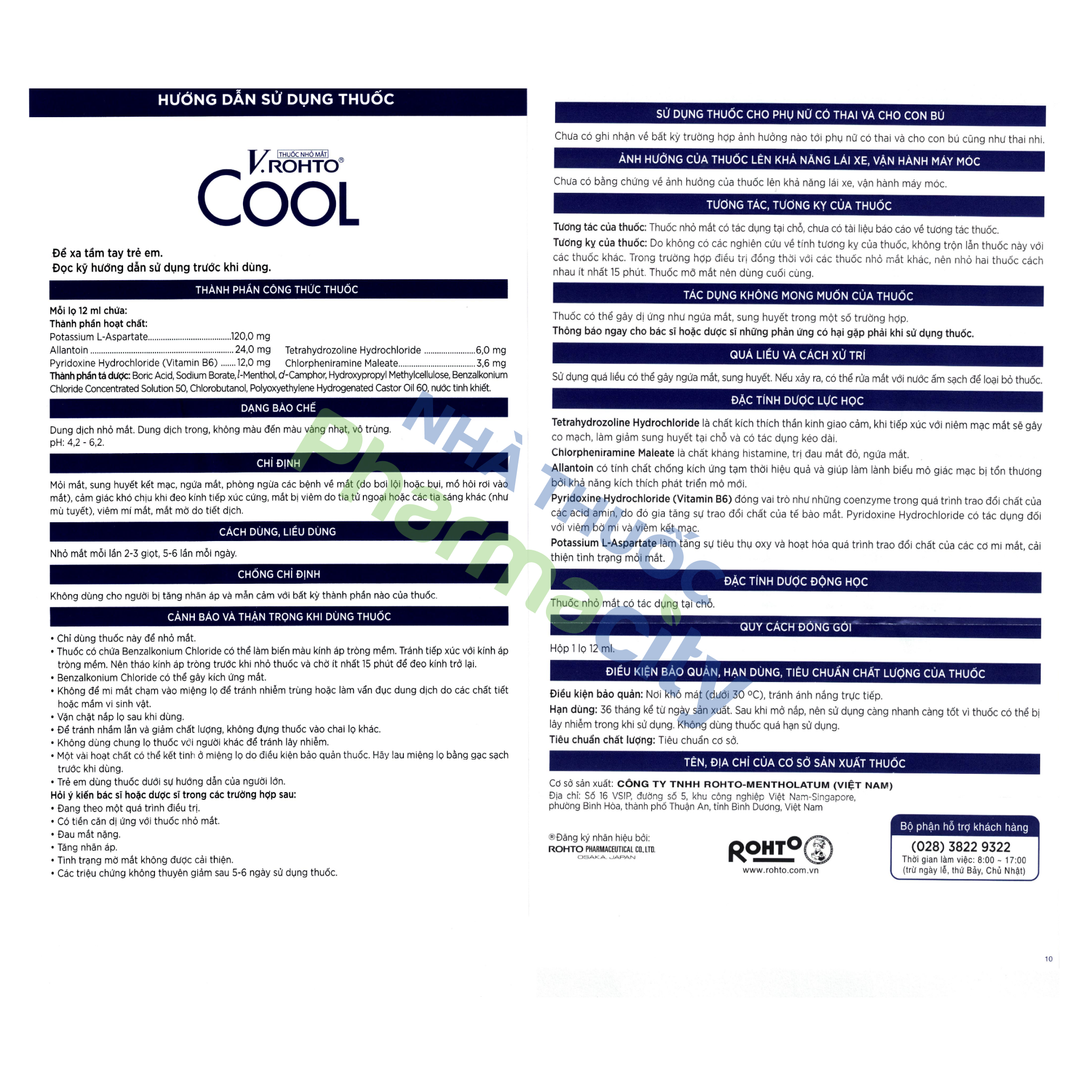 - Không đổ dung dịch khác vào vỏ chai sản phẩm V.Rohto Cool để sử dụng.