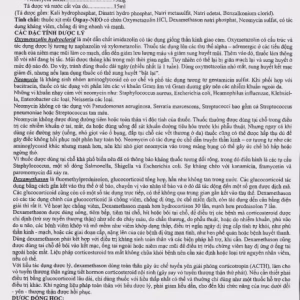 Dexamethason: Là Fuomethylprednisolon, Glucocorticoid tống hợp, hầu như không tan trong nước. Các Glucocorticoid tác dụng bằng cách gắn kết vào thụ thể ở tế bào, chuyển vị vào nhân tế bào và ở đó đã tác động đến 1 số gen được dịch mã.