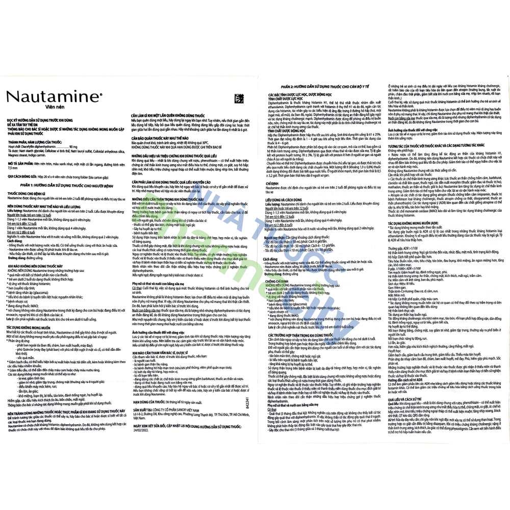 - Thuốc qua sữa mẹ, dù là lượng nhỏ nhưng diphenhydramine có tác dụng an thần đáng kể, do đó không dùng Nautamine trong thời gian cho con bú.