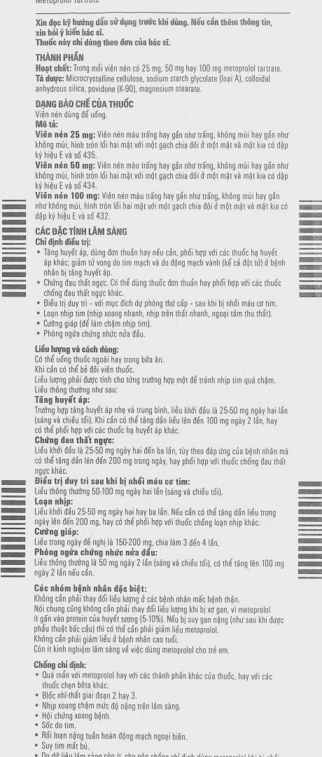 Trong mỗi viên nén có 25mg metoprolol tartrate.
