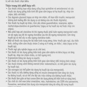 – Metoprolol với verapamil và/hoặc các thuốc chẹn kênh canxi loại diltiazem khác sẽ làm tăng tác dụng co cơ âm và điều nhịp.