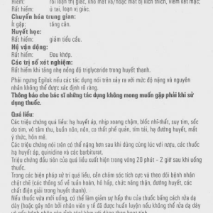 Các trị số xét nghiệm: Hiếm khi tăng nhẹ nồng độ triglyceride trong huyết thanh.