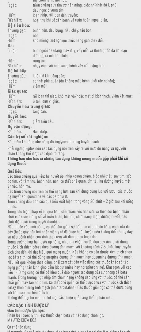 – Báo bác sĩ gây mê trước khi can thiệp phẫu thuật nếu có dùng metoprolol, tuy nhiên không nên ngưng Egilok.