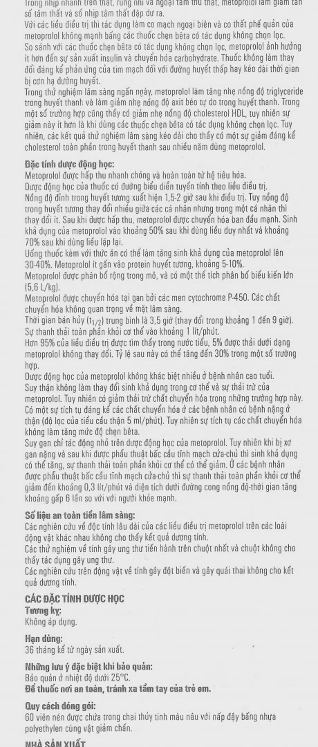 – Metoprolol có thể làm triệu chứng rối loạn tuần hoàn ngoại biên nặng hơn. Giảm liều dần từng bước trong 14 ngày và tránh ngưng đột ngột để triệu chứng nặng hơn.