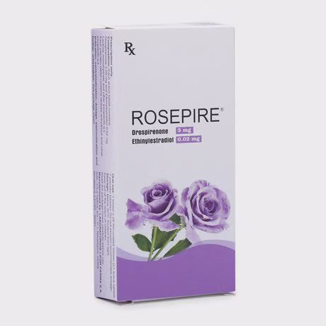 - Rosepire là sản phẩm của Công ty Laboratorios Leon Farma, S.A (Tây Ban Nha), thành phần chính bao gồm drospirenone và ethinylestradiol. Thuốc được sử dụng để tránh thai, điều trị mụn trứng cá và tăng tiết bã nhờn trên da.