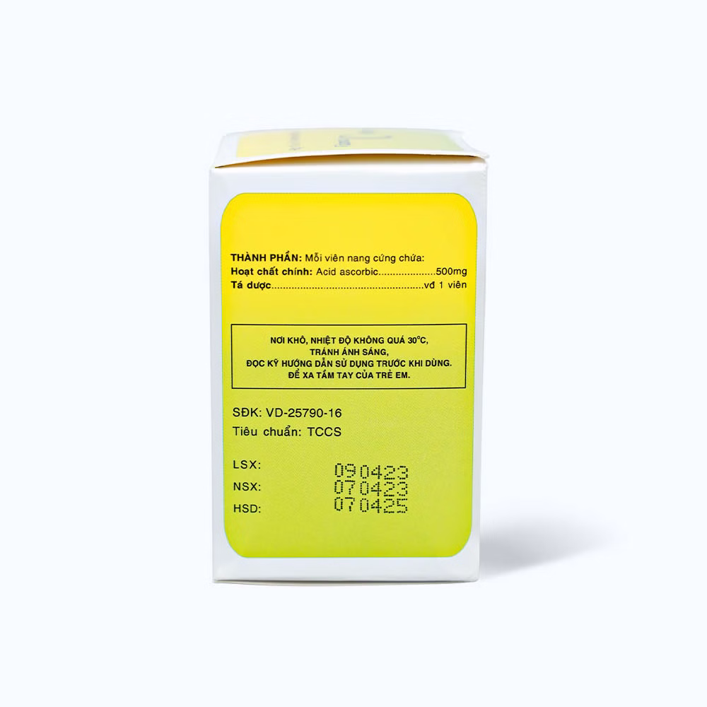 - Vitamin C (Acid Ascorbic): 500mg mỗi viên nang. Đây là thành phần hoạt chất chính, giúp cung cấp vitamin C cần thiết cho cơ thể, hỗ trợ tăng cường hệ miễn dịch, chống oxy hóa và duy trì sức khỏe tổng thể.
