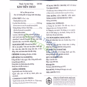 - Cho viên bao đường: Cao Kim tiền thảo 120mg (tương đương dược liệu Kim tiền thảo 2,4g)