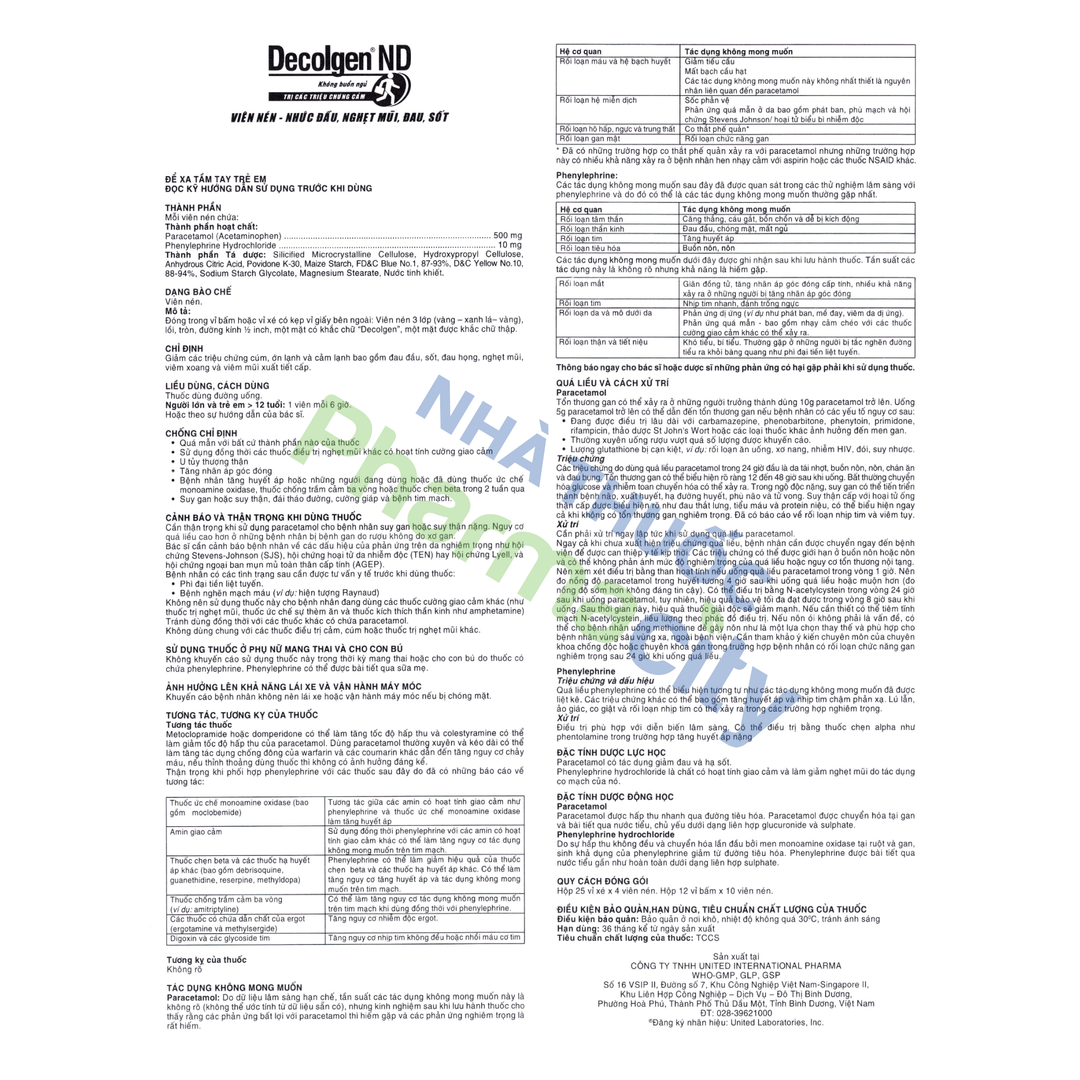 - Hoạt chất: Paracetamol (acetaminophen) 500mg, Phenylephrine Hydrochloride 10mg.