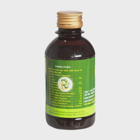 Hoạt chất: Viễn chí 5g, Tang phiêu tiêu 15g, Phục Linh 30g, Quy bản và quy giáp 25g, Đương quy 35g, Đảng Sâm 40g, Cam thảo 5g, Natri Benzoat 0.4g, Đường trắng 40g, Nước uống được 200ml.