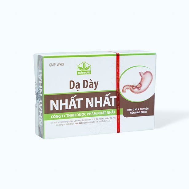 Thuốc Dạ Dày Nhất Nhất được bào chế dưới dạng viên nén bao phim. Hộp 2 vỉ x 10 viên.