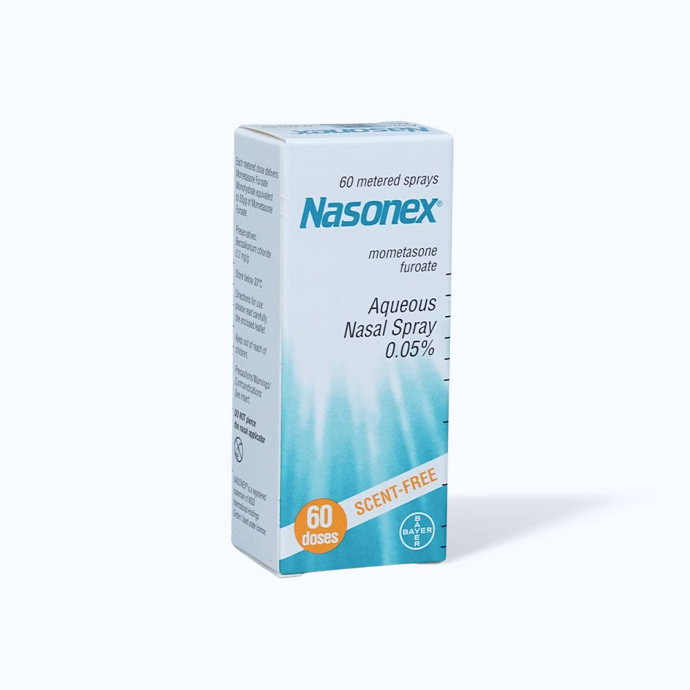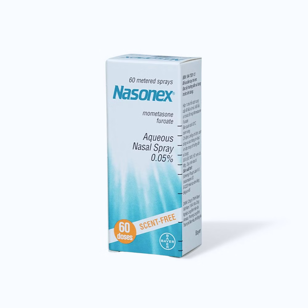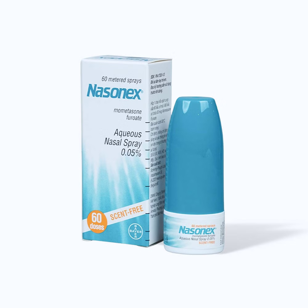Nasonex Aqueous Nasal Spray 50mcg là một loại thuốc xịt mũi chứa mometasone furoate, thuộc nhóm corticosteroid. Thuốc được sử dụng để giảm viêm và các triệu chứng liên quan đến viêm mũi dị ứng hoặc viêm xoang.
