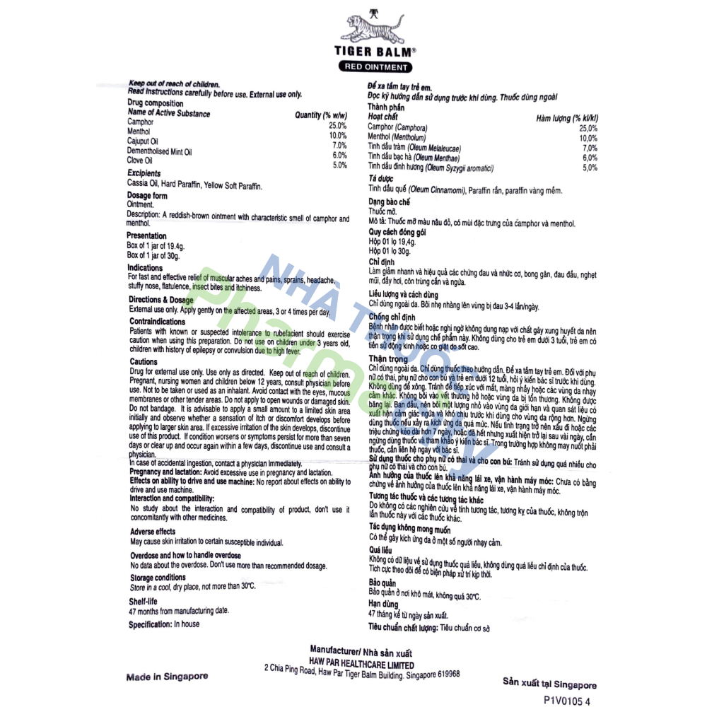 Nơi sản xuất: Haw Par Healthcare Limited (Singapore)