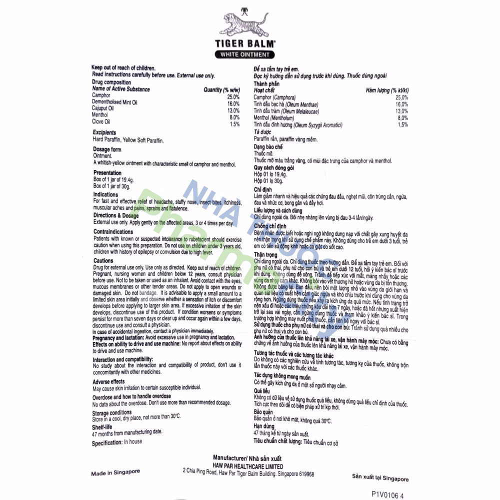 Nơi sản xuất: Haw Par Healthcare Limited (Singapore)