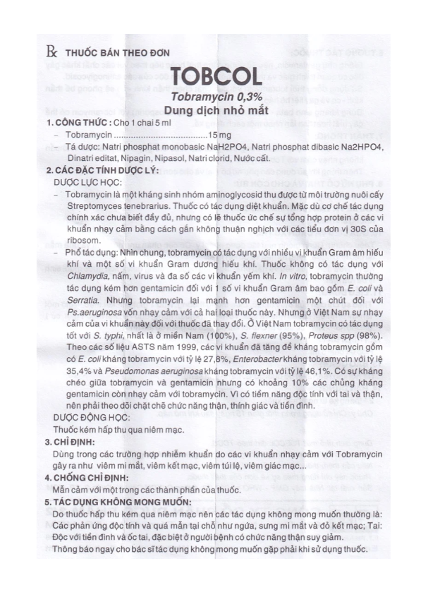- Hoạt chất: Tobramycin 15mg (dưới dạng tobramycin sulfat)