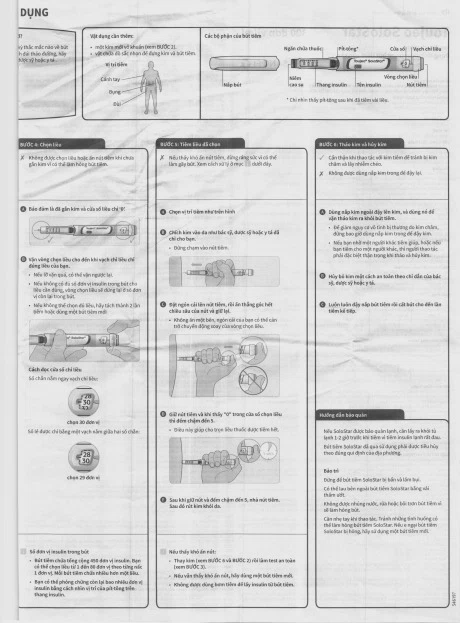 - Không dùng nếu bút tiêm SoloStar bị hỏng, không được bảo quản đúng cách, nếu bạn không biết nó có hoạt động bình thường không hoặc bạn nhận thấy việc kiểm soát đường huyết trở nên xấu hơn ngoài dự kiến.