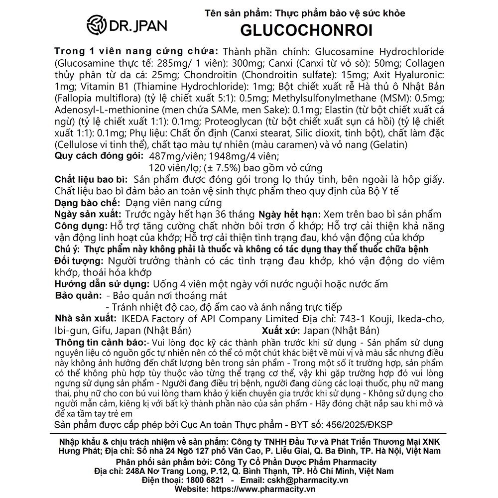 Viên uống Glucochonroi là thực phẩm bảo vệ sức khỏe được sản xuất tại Nhật Bản, hỗ trợ tăng cường dưỡng chất thiết yếu cho sụn khớp và xương, từ đó giúp hỗ trợ duy trì khả năng vận động linh hoạt. Sản phẩm được kết hợp từ Glucosamine, Chondroitin, Collagen, MSM, Elastin, Proteoglycan và nhiều dưỡng chất từ tự nhiên, giúp đồng hành chăm sóc hệ cơ xương khớp một cách toàn diện.