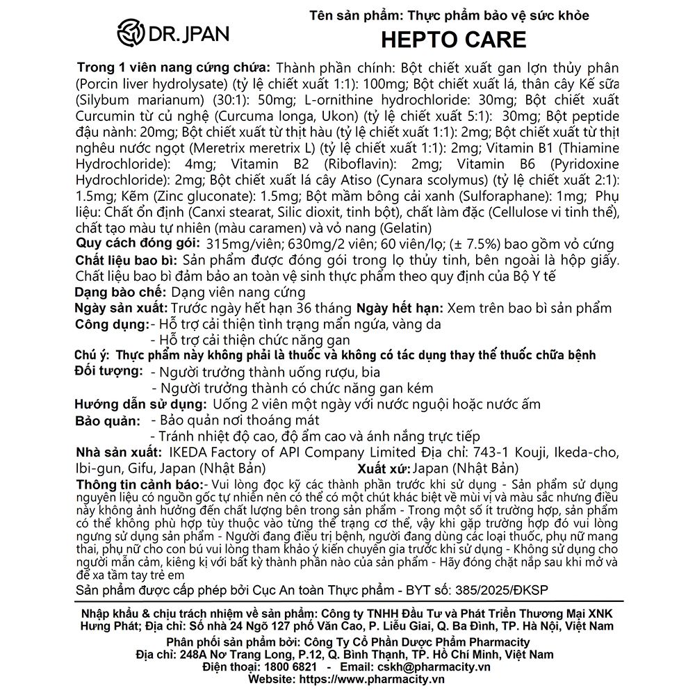 Công ty phân phối: CÔNG TY CỔ PHẦN DƯỢC PHẨM PHARMACITY