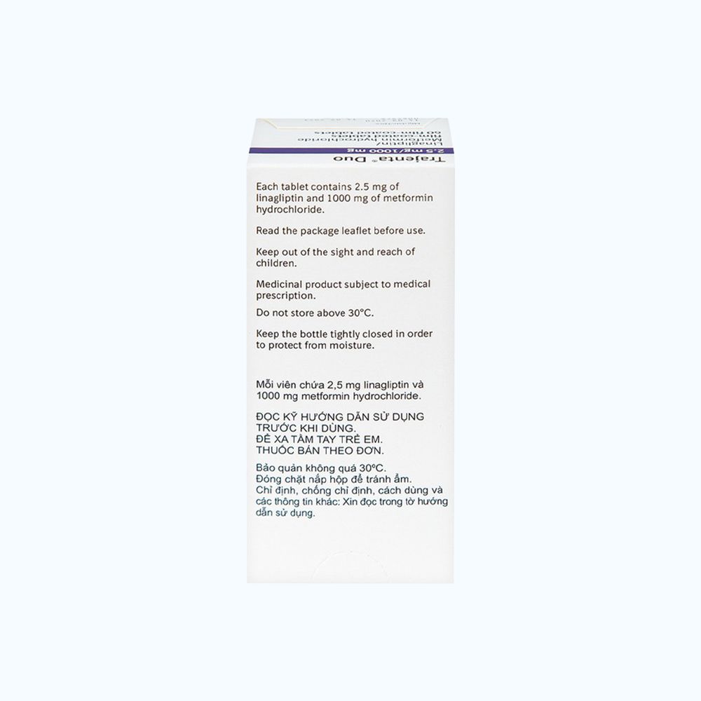 Sử dụng Trajenta Duo 2,5/1000mg cùng với thức ăn không làm thay đổi nồng độ chung của linagliptin. AUC của metformin không thay đổi tuy nhiên, nồng độ đỉnh của metformin trong huyết thanh giảm 18% khi sử dụng cùng thức ăn. Thời gian đến khi đạt nồng độ đỉnh của metformin trong huyết thanh bị chậm đi 2 giờ khi dùng cùng thức ăn. Những thay đổi này ít có khả năng quan trọng về mặt lâm sàng.