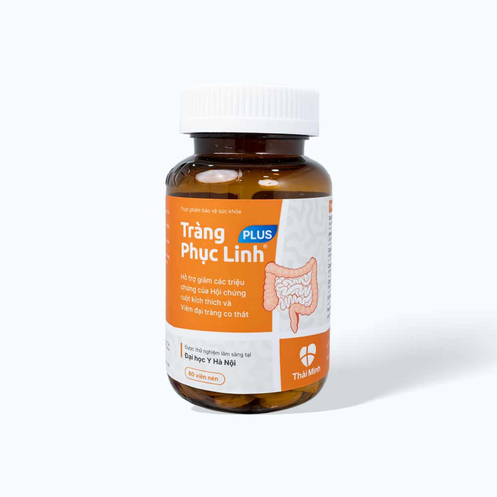 Tràng Phục Linh Plus lọ 80 viên là thực phẩm bảo vệ sức khỏe được bào chế từ các thảo dược thiên nhiên như bạch truật, bạch phục long, hoàng bá, bạch thược cùng 2 thành phần 5-HTP, Immune Gammar. Sản phẩm có tác dụng hỗ trợ tăng cường tiêu hóa và hỗ trợ giảm triệu chứng bệnh viêm đại tràng.