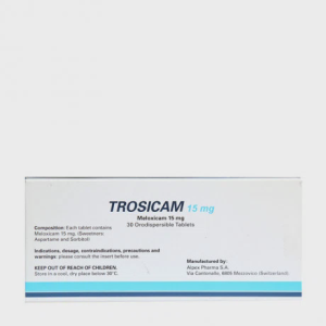 Trosicam là thuốc chứa meloxicam, được sử dụng để điều trị triệu chứng viêm đau xương khớp (bệnh hư khớp, bệnh thoái hóa khớp), viêm khớp dạng thấp, và viêm cứng khớp đốt sống.