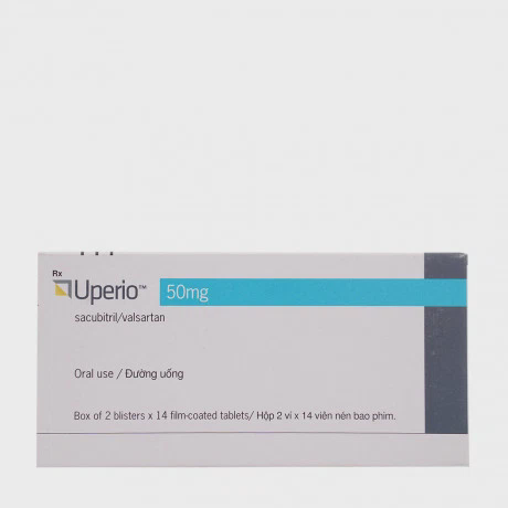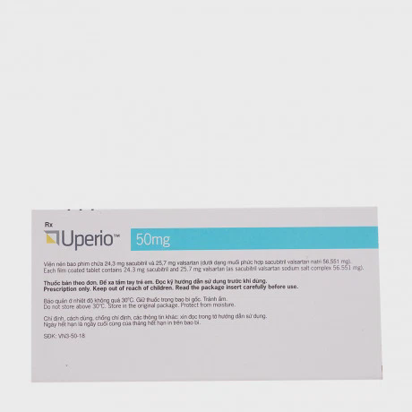 – Uperio 50 mg, viên nén bao phim: Mỗi viên nén bao phim bao gồm 24,3 mg sacubitril và 25,7 mg valsartan (dưới dạng muối phức hợp sacubitril valsartan natri 56,551 mg).