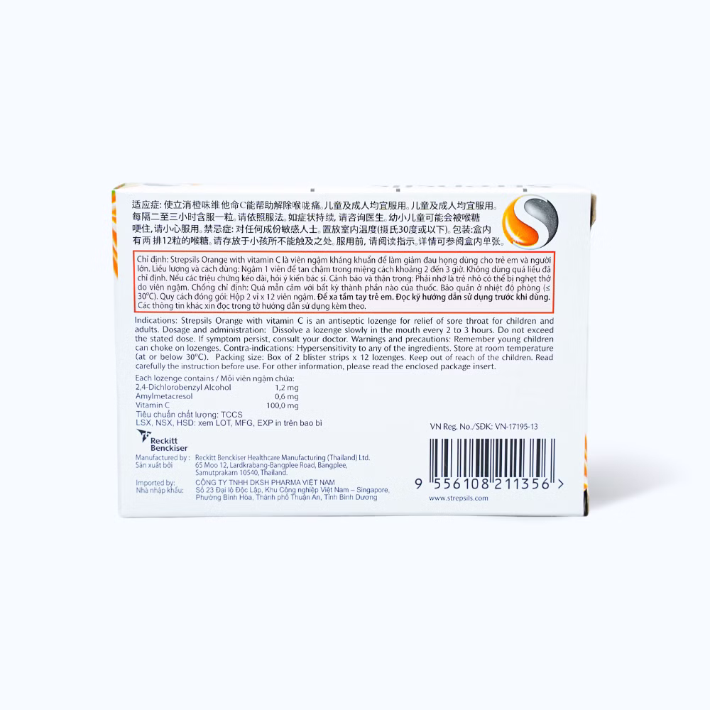 Thành phần của Viên ngậm Strepsils Orange with Vitamin C