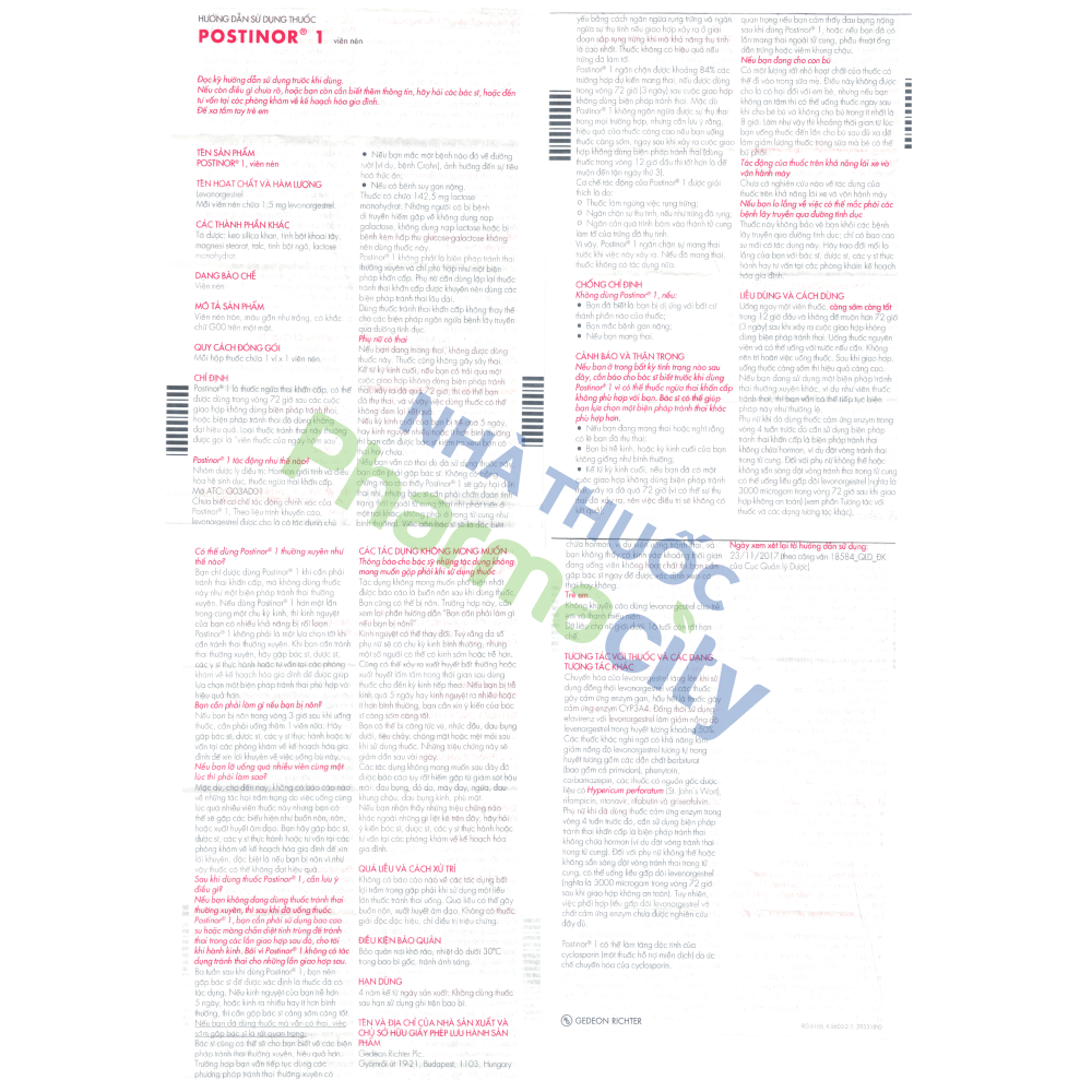 Viên nén Postinor 1 là thuốc ngừa thai khẩn cấp, có thể được dùng trong vòng 72 giờ sau các cuộc giao hợp không dùng biện pháp tránh thai, hoặc biện pháp tránh thai đã dùng không đạt hiệu quả.