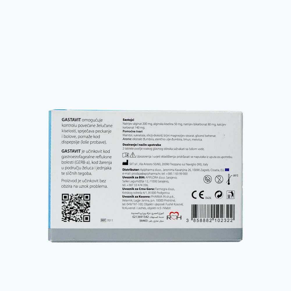 Sodium alginate:200mg, Calci carbonat: 140mg. Sodium bicarbonate: 80mg. Acid alginic: 50mg.