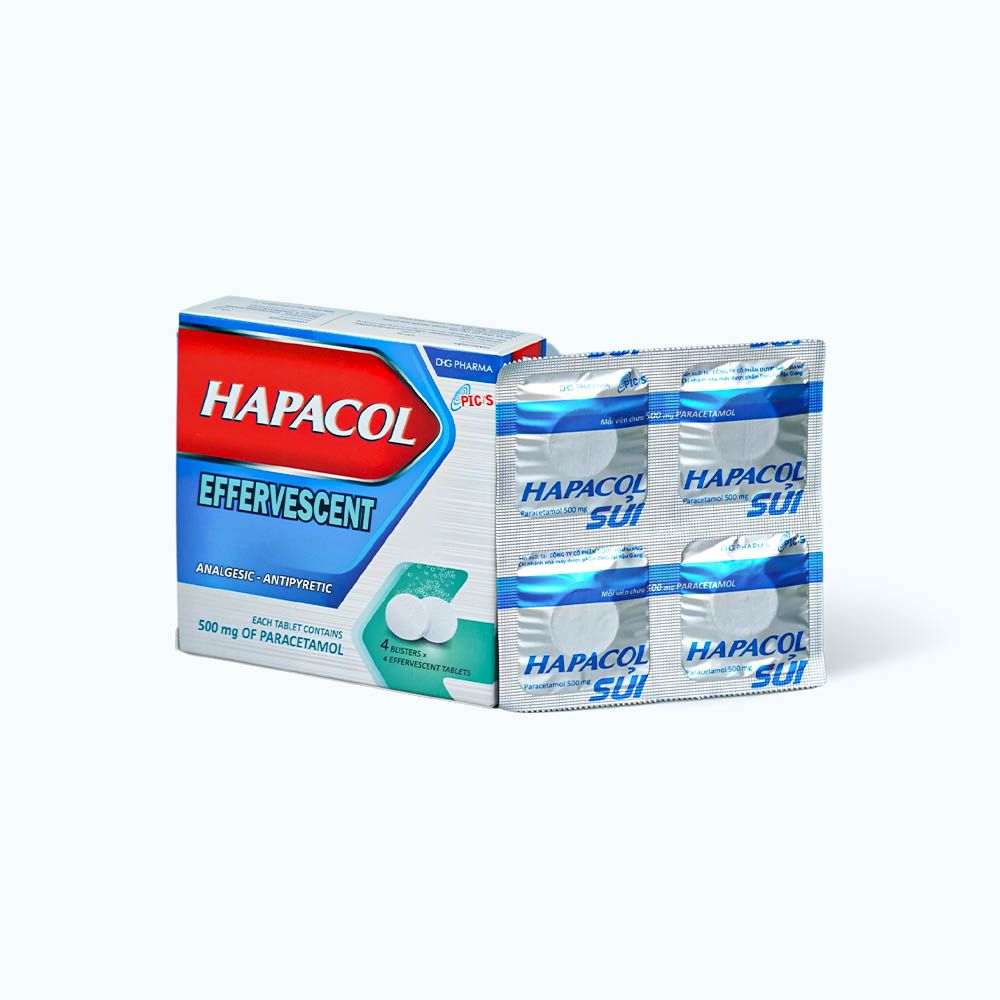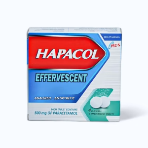 Hapacol 500mglà viên nén sủi bọt được sử dụng để giảm đau và hạ sốt. Thành phần chính của thuốc là Paracetamol, giúp giảm các triệu chứng đau và sốt liên quan đến các bệnh thông thường như cảm lạnh, cúm, đau đầu, đau cơ, đau răng và đau khớp.