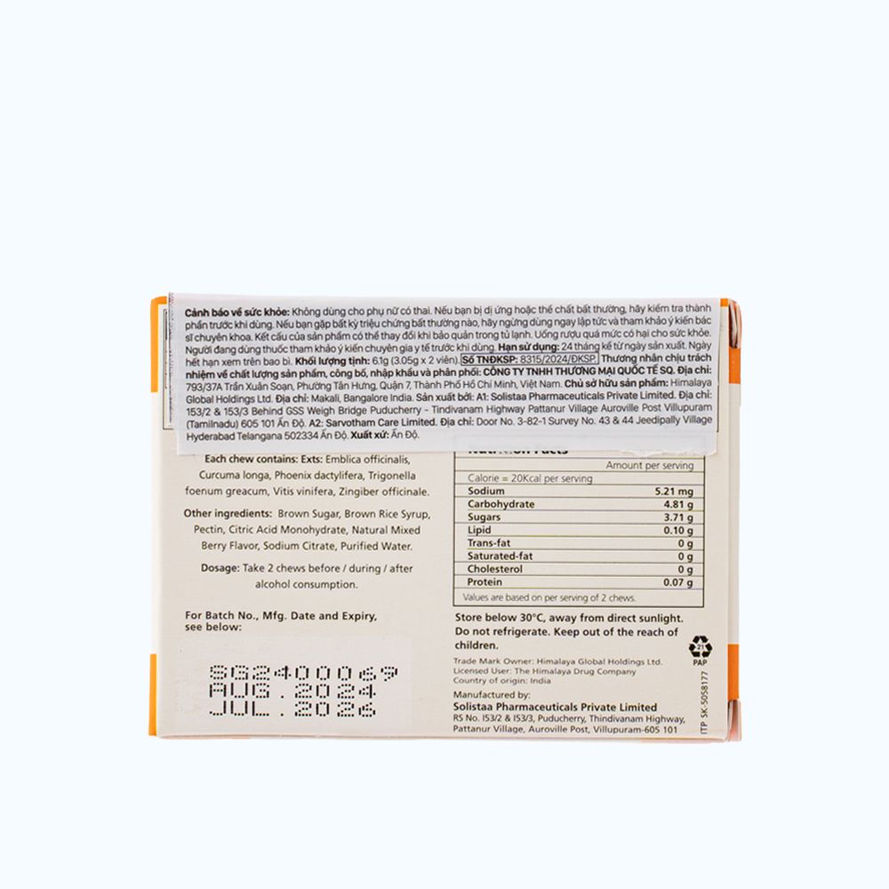Nhai 2 viên trước hoặc trong hoặc sau khi uống bia rượu.