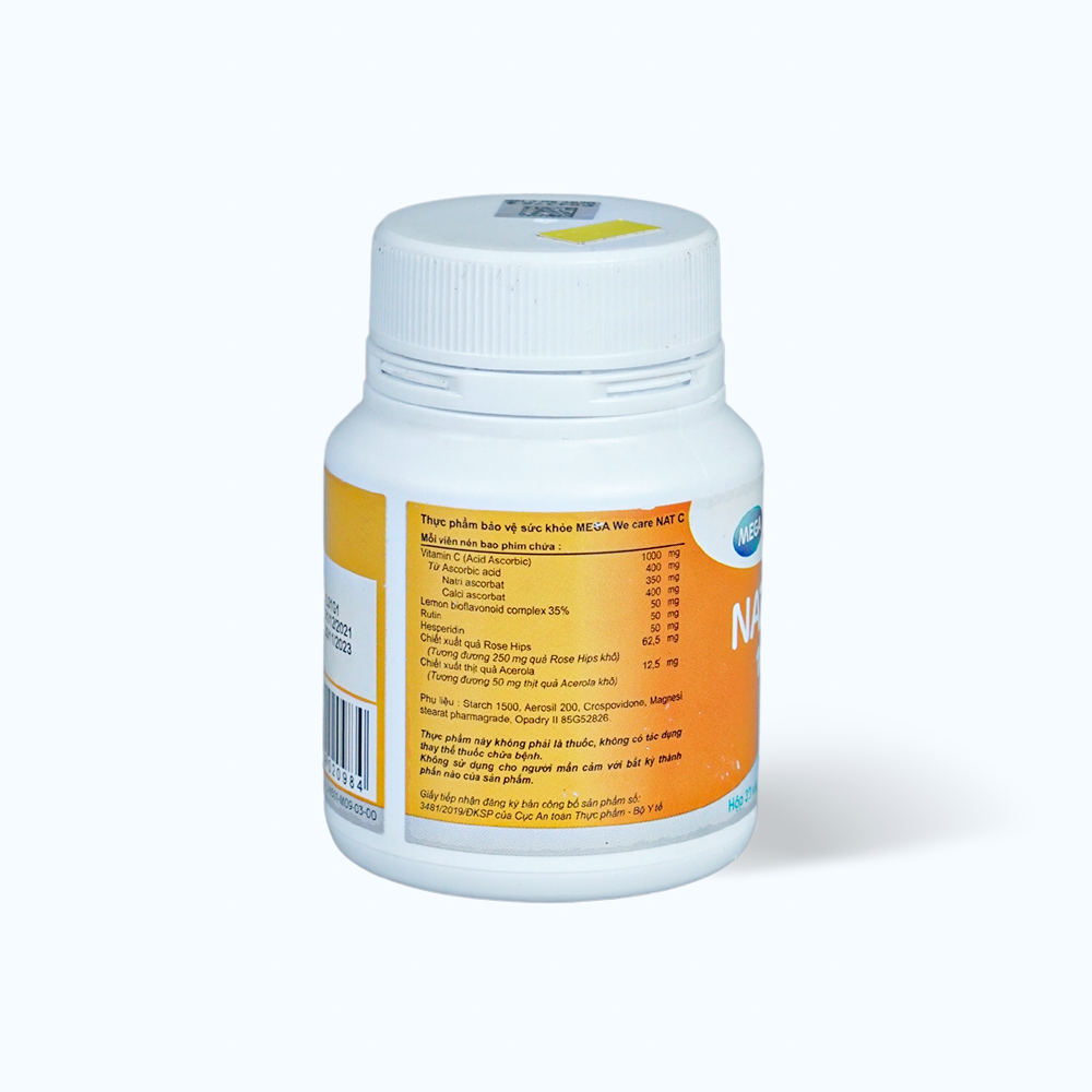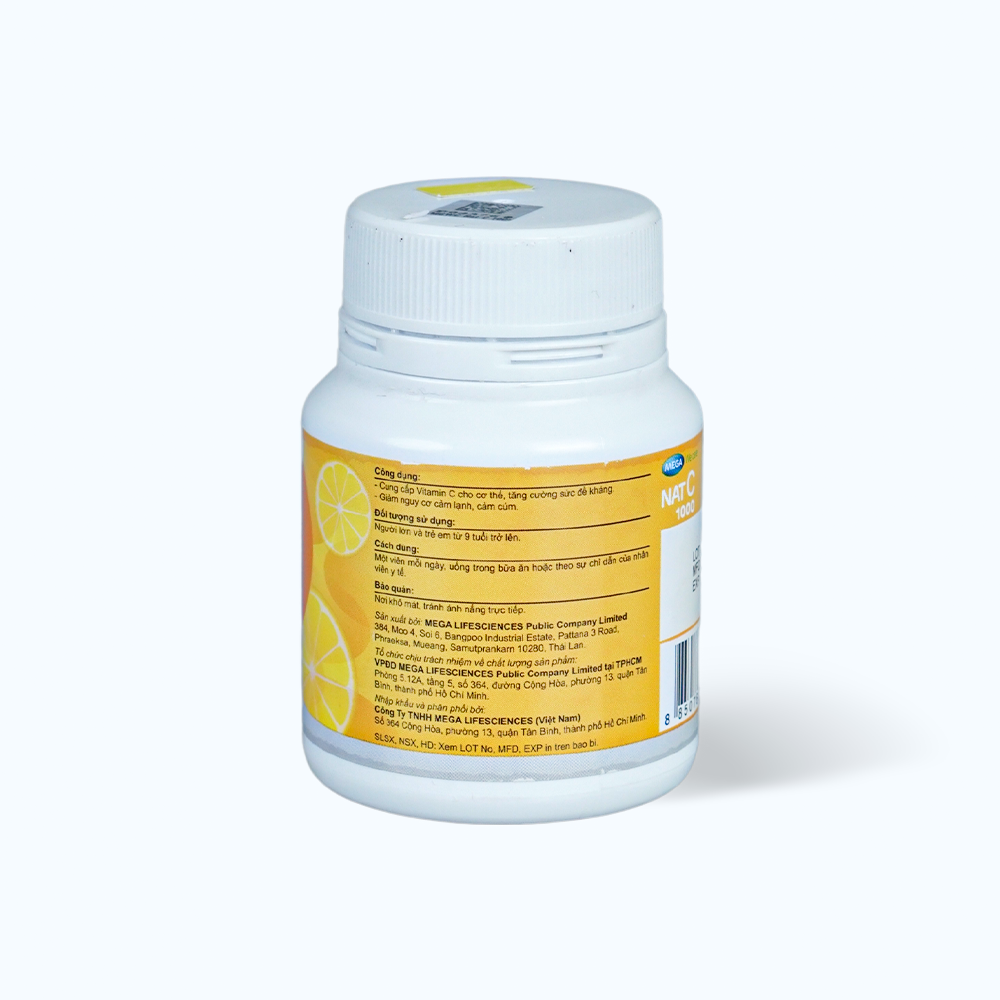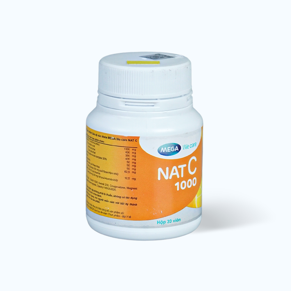Viên uống NAT C 1000 bổ sung vitamin C tăng cường đề kháng, giảm cảm cúm, cảm lạnh (Lọ 30 viên)