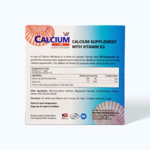 Canxi (dưới dạng Canxi Carbonate) 600.00 mg, vitamin D3 (dưới dạng cholecalciferol) 5.5 mcg