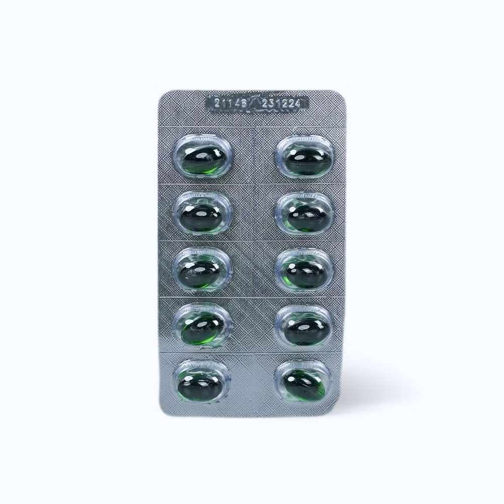 - Tá dược vừa đủ 1 viên (Dầu đậu nành, gelatin, glycerin, nipasol, xanh clorophyl)