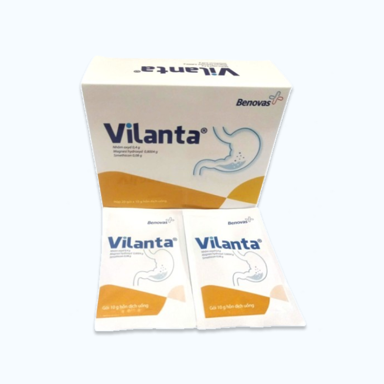 Hỗn dịch uống Vilantađược sản xuất bởi Công ty Cổ phần Dược phẩm Cửu Long, với thành phần chính Nhôm hydroxide, Magnesi hydroxide và Simethicone. Thuốc có tác dụng làm dịu các triệu chứng do tăng tiết acid dạ dày (chứng ợ nóng, ợ chua, đầy bụng và khó tiêu do tăng acid dạ dày), điều trị triệu chứng trào ngược dạ dày–thực quản.