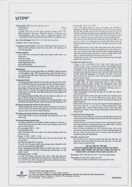Vit PP 500mg được chỉ định cho bệnh pellagra- bệnh lý do thiếu hụt vitamin B3 (vitamin PP), đặc trưng bởi các tổn thương da, đặc biệt trên các vùng tiếp xúc với ánh sáng mặt trời, cùng với tăng sắc tố và tăng sừng hóa. Đây là một loại thuốc kê đơn, cần sử dụng thận trọng dưới sự hướng dẫn của nhân viên y tế.