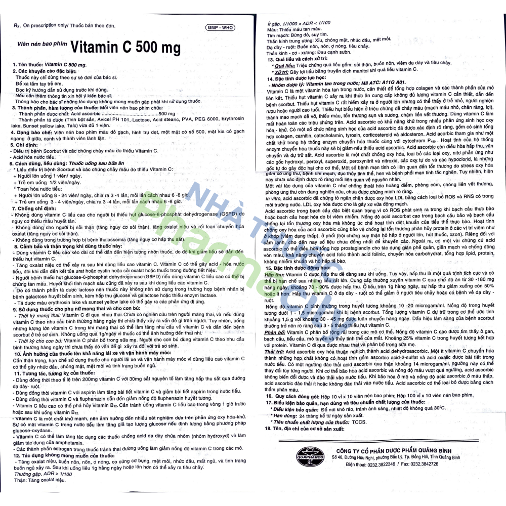 Thành phần Thuốc Vitamin C 500mg Quảng Bình