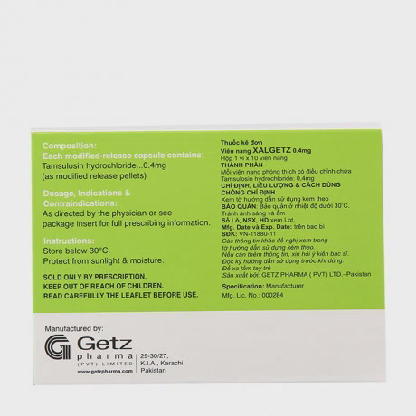 Dấu hiệu và hội chứng tăng sản lành tính ở tuyến tiền liệt dùng 1 viên nang XALGETZ (Tamsulosin HCL) 0,4mg mỗi ngày. Nên dùng khoảng nửa giờ sau bữa an, vào cùng thời điểm trong ngày.