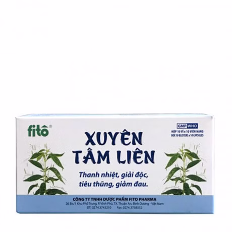 Thuốc Xuyên Tâm Liên Fito có thành phần từ Xuyên tâm liên, Bột mịn Xuyên tâm liên thanh nhiệt, giải độc, tiêu thũng, giảm đau.