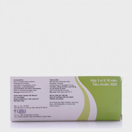 Rupatadin fumarat tương đương với Rupatadin 10mg.